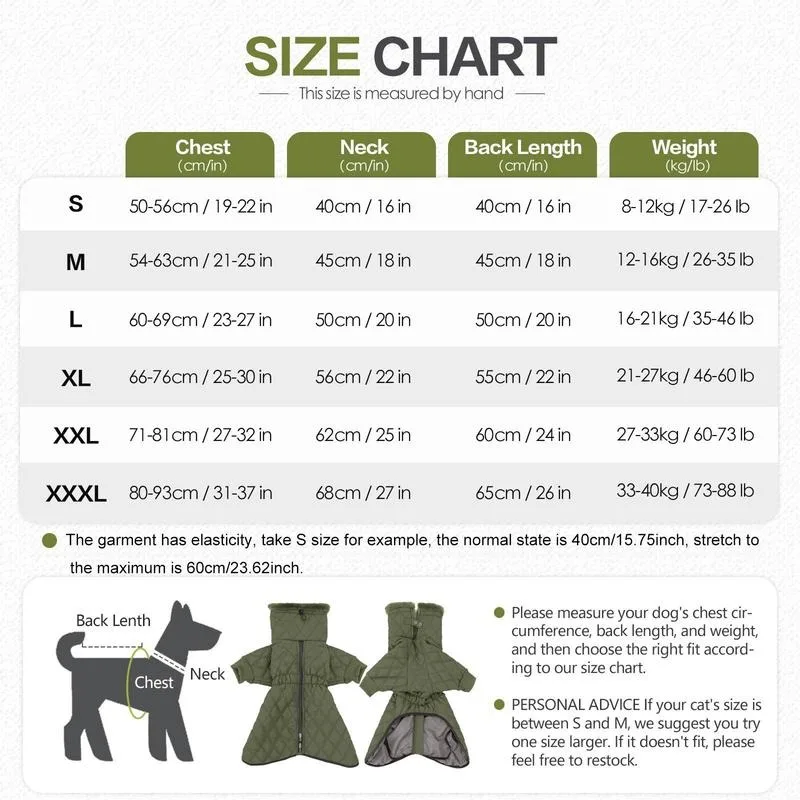 - Available in Multiple Sizes: Whether you have a small, medium, or large dog, this dog snowsuit is available in various sizes(S-3XL), ensuring a perfect fit for any breed. The dog winter clothes are great for indoor or outdoor activities in autumn and winter such as hiking, skiing, camping.